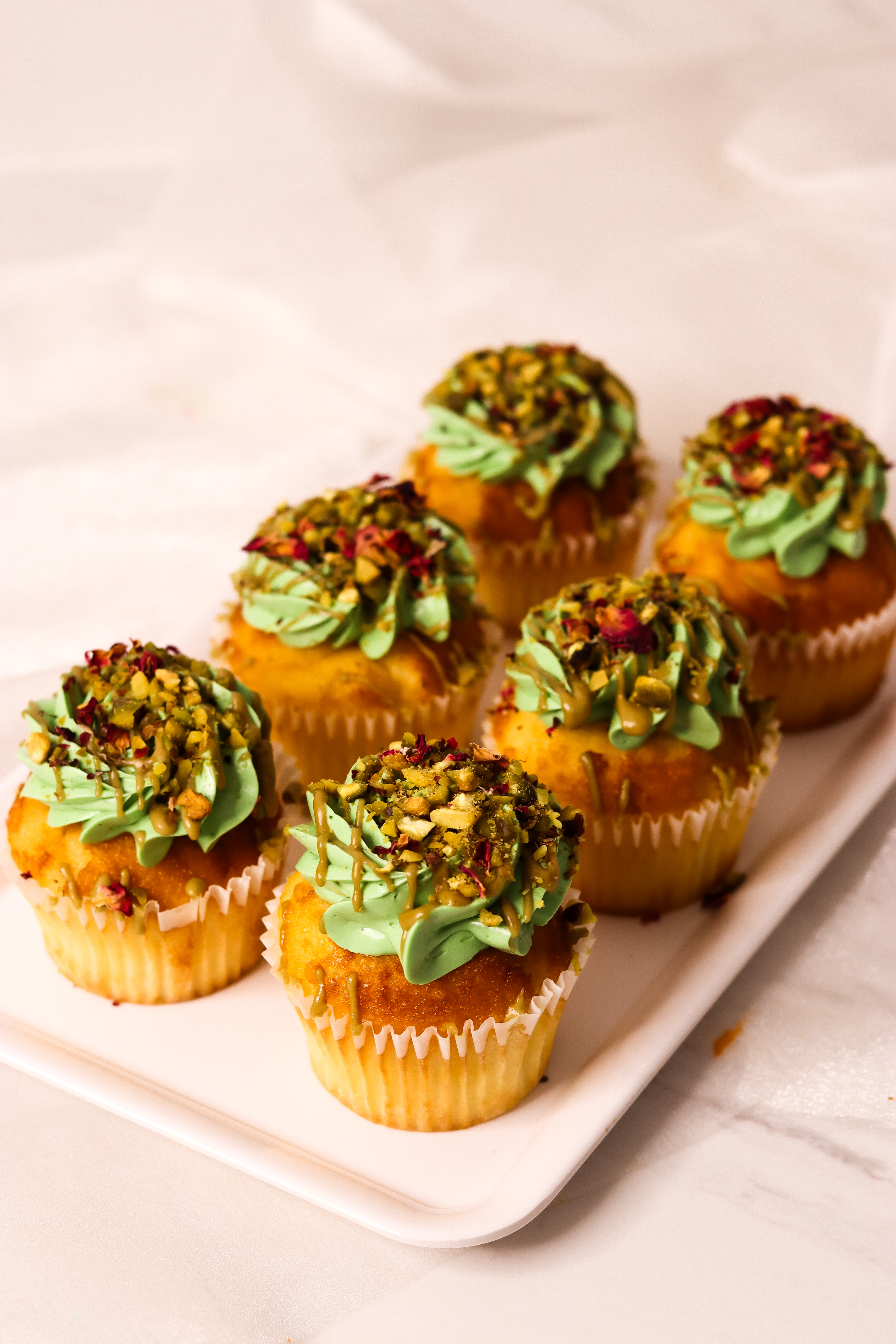 Enjoy our refreshing Pistachio Rose Cupcakes featuring delicate pistachio cake infused with rose water, topped with pistachio rose buttercream and crushed pistachios.